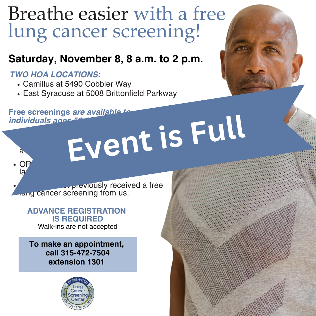 “Early detection is the best tool we have against lung cancer. By offering these free screenings with HOA, we want to give people at risk the chance to catch problems sooner, when treatment can be most effective,” states CRA’s Chief Operating Officer Jacqui Floyd.